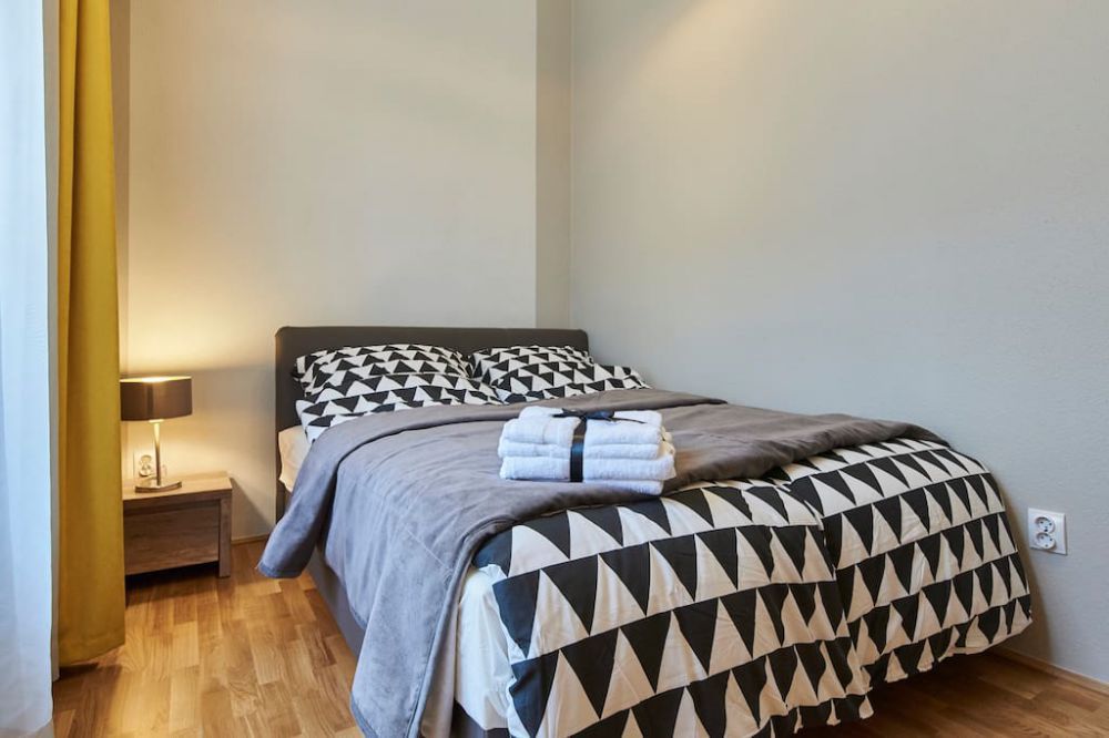 The flat is located right next to a big transportation hub with buses, with tram stop for lines 4-6 which is right next to the entrance.